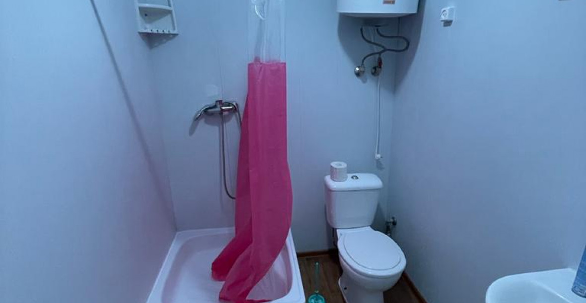 На первом этаже находится кухня-гостинная и совмещенный сан-узел. Кухня оснащена небольшим гарнитуром с раковиной, холодильником, микроволновкой, холодильником, обеденным столом, микроволновкой, чайником, шкафчиками для посуды. В зоне гостинной расположен диван, телевизор и односпальная кровать. В сан. узле находится душевая кабина, унитаз, раковина, бойлер для горячей воды.